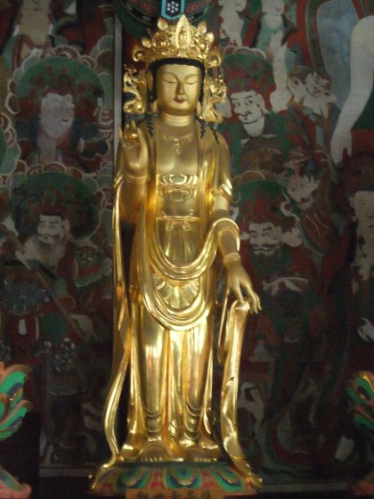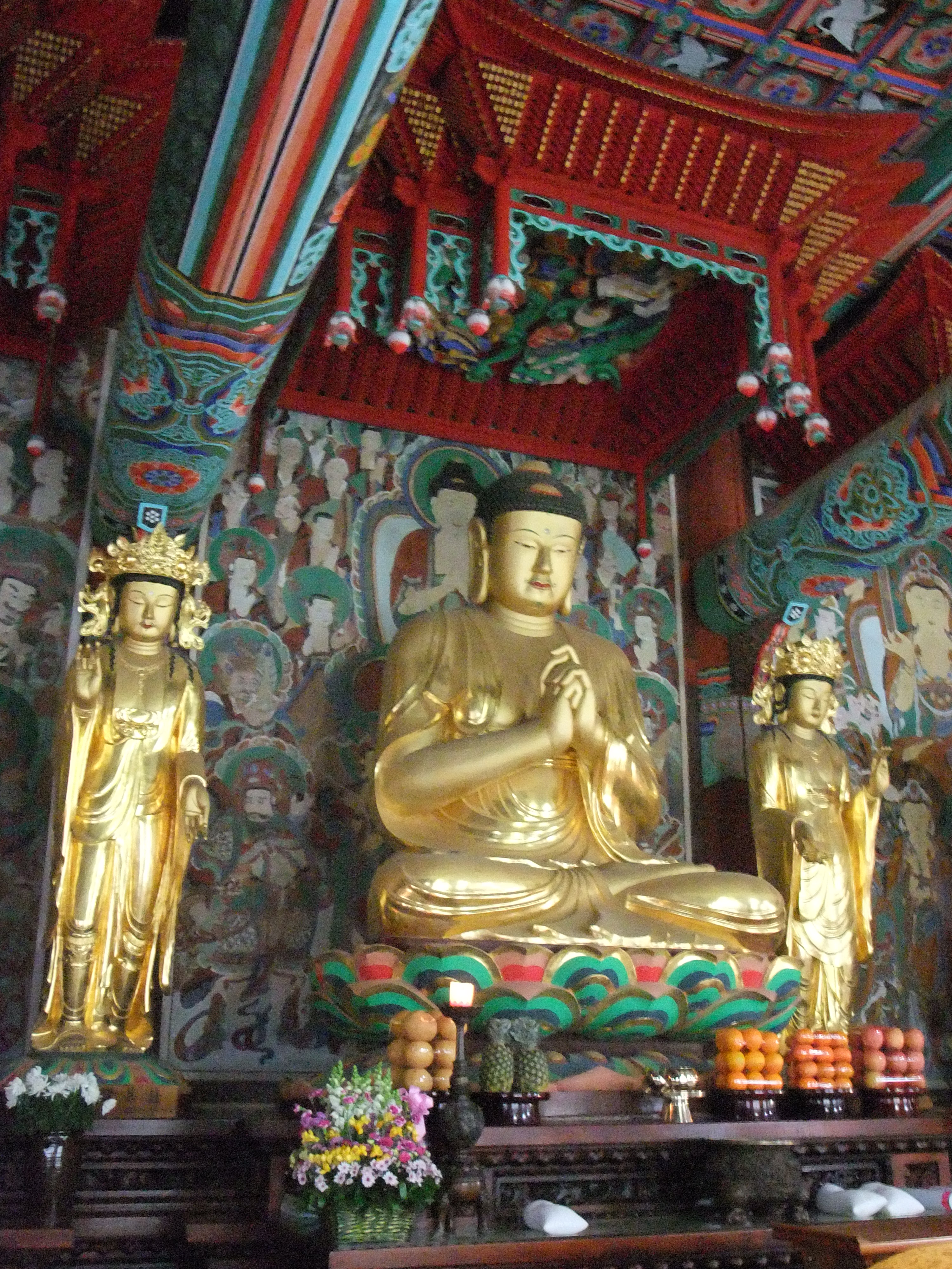 Gemsansa is made up of many buildings holding a different main Bodhisattva, but this one is particularly spectacular. It is three stories high, and on the inside holds a statue that takes up every bit of that three stories. We were allowed to take pictures, which is very rare inside temples.