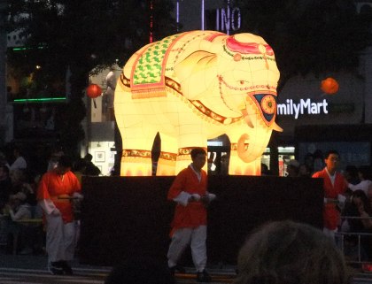 The highlight was the animated, fire-breathing lanterns. My camera ran out of battery before the dragons got to us, but I did manage to catch the elephant and the peacocks.