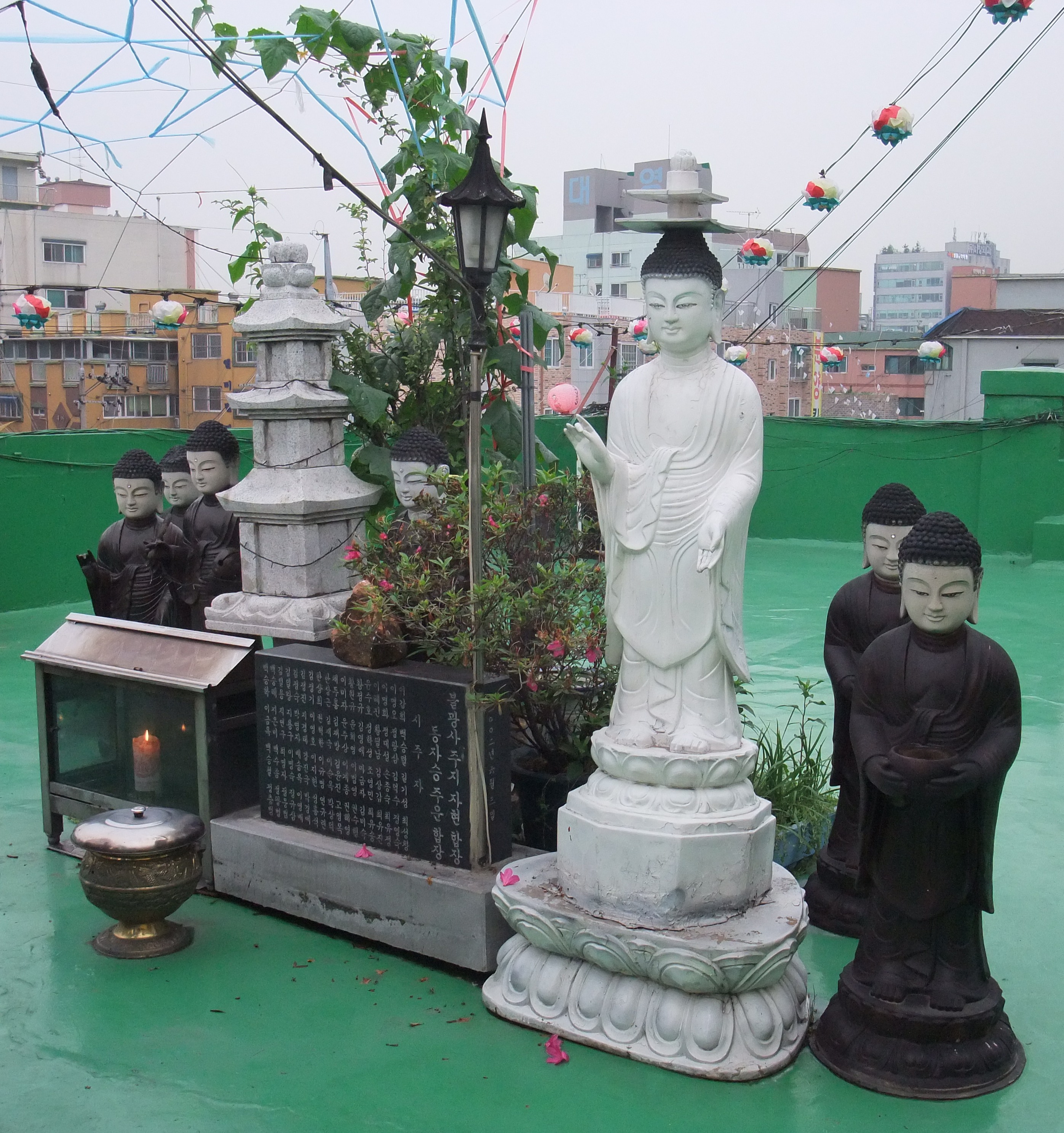 On the third floor is a beautiful shrine room. Even though part of the reason I came to back to Asia was to re-immerse myself in Buddhist culture, it doesn’t feel like part of everyday life here. Consumerism and an extreme materialism to the point of being disgusting has taken over, leaving the less than a third of the population that still even considers itself Buddhist on a shelf somewhere behind last years’ cellphones. There are still some great cultural holidays, and the occasional monk on the subway, but it doesn’t “feel” like a Buddhist country the way other places I’ve travelled do.