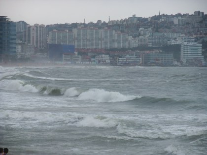 The rain took a reprieve and I headed to Haeundae Beach, which was gorgeously uncrowded and had huge waves from the storm.