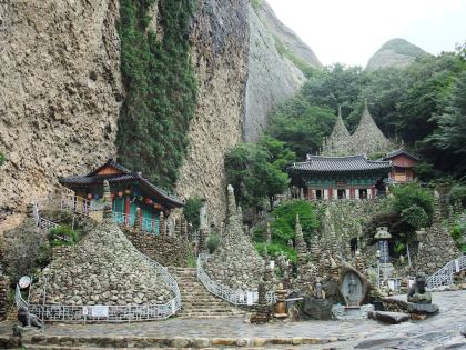 From there, my guidebook, said I could use the same bus #7 to get off at Seonggoksa, but was very vague about the bus stop, and how far away the temple was. The driver helped me figure out where to get off, but warned me that it was a hike. Here is the bus stop for anyone wanting to do the same: