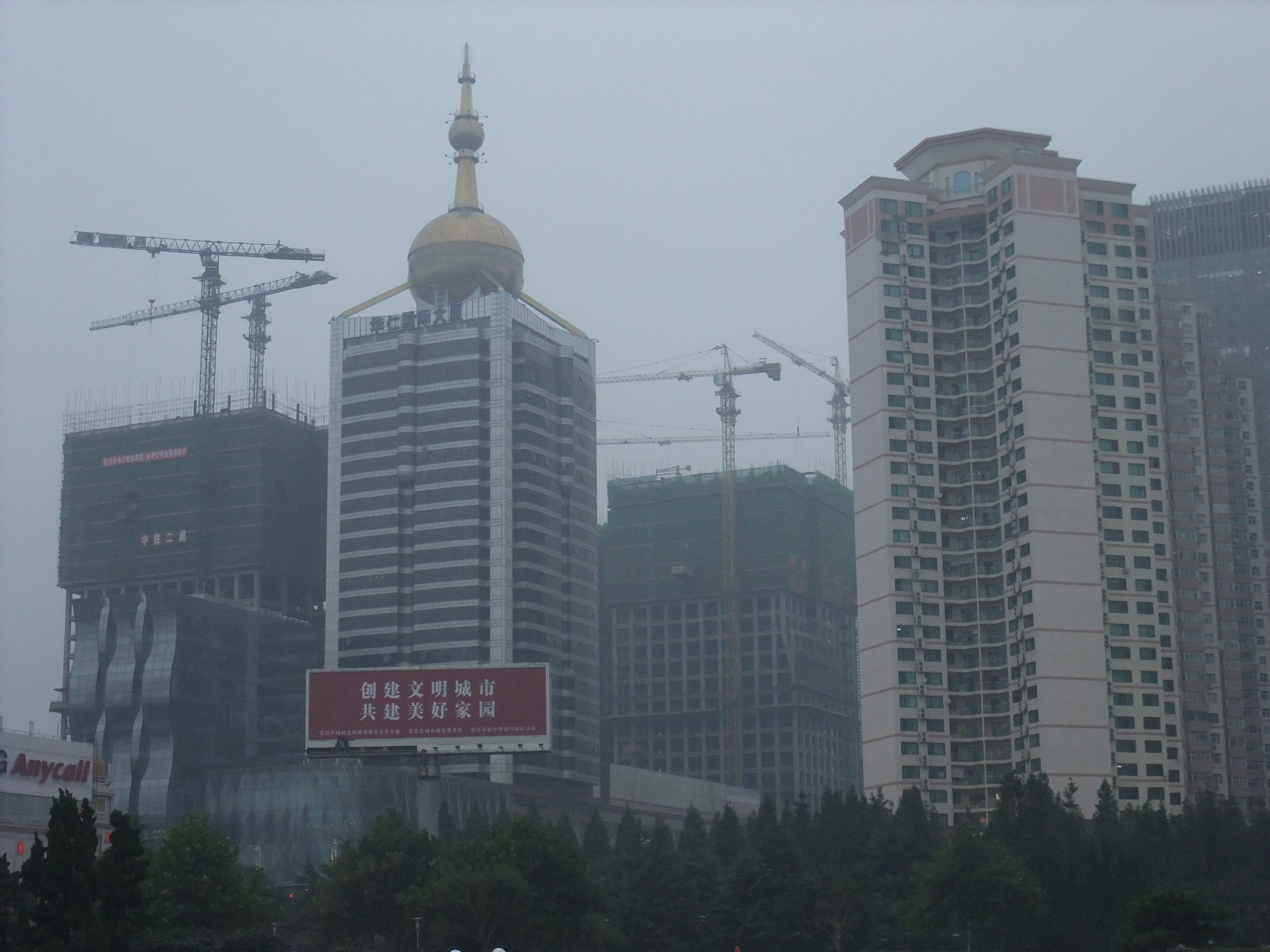 So far things are going well, and I am extremely grateful that people here are so helpful. There were no maps of the city to be found at the airport, and without the bus drivers prompting, there would have been no way for me to know which stop to get off at. The first thing I notice is that the visibility is horrible. Probably less than 1km. Another thing is the diversity in cityscape compared to Korea. To me, every Korean city and town essentially looks the same. I don’t know if one major developer has dibs on the entire country, or if all the developers build in the same style, but really, the whole country is a carbon copy of itself. Here there are the same highrise apartments in clusters, but the style of each cluster is a little different. The skyline is diverse with some unique buildings, and there is a much more liberal use of color here that doesn’t involve neon signs.