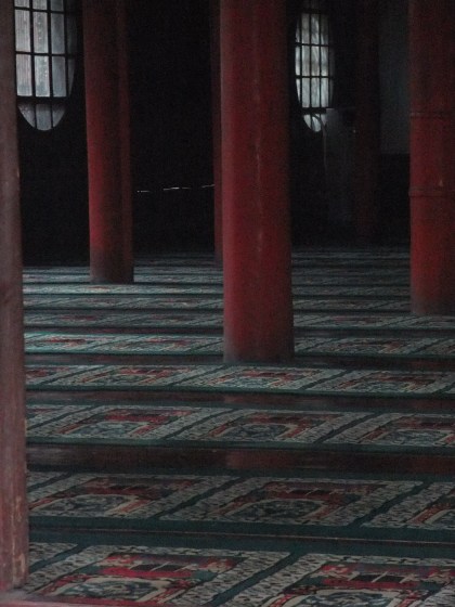 From there I headed out to the Muslim quarter where there is an old Chinese style Mosque as well as some smaller Persian style ones tucked into the streets. It was really a gorgeous little refuge. The folks there were extremely welcoming and had no problem with a western woman hanging around and even let me stay and watch the five o’clock prayers. I was trying to stay out of the way and be respectful, but it turned out I was sitting on the steps of Imam’s quarters and was quite embarrassed when he came regally down the steps when the bells started. He just laughed and motioned for me to stay where I was. The singing was stunning.
