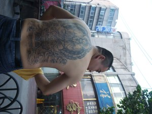 Chinese Muslims are known for being the most liberal. The kebab street lined with meat shops and stacks and stacks of beer would prove this. Women sitting down and throwing off their head scarves while everyone passes around the Tsingtao. I’m sure that’s not everyone, but it’s quite a large street. The young men I bought some kebabs from and shared a beer with were Buddhists, and my hosts was more than happy to show off his extensive tattoo, as well as the three scars from knife fights he has on the other side.