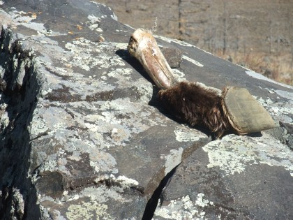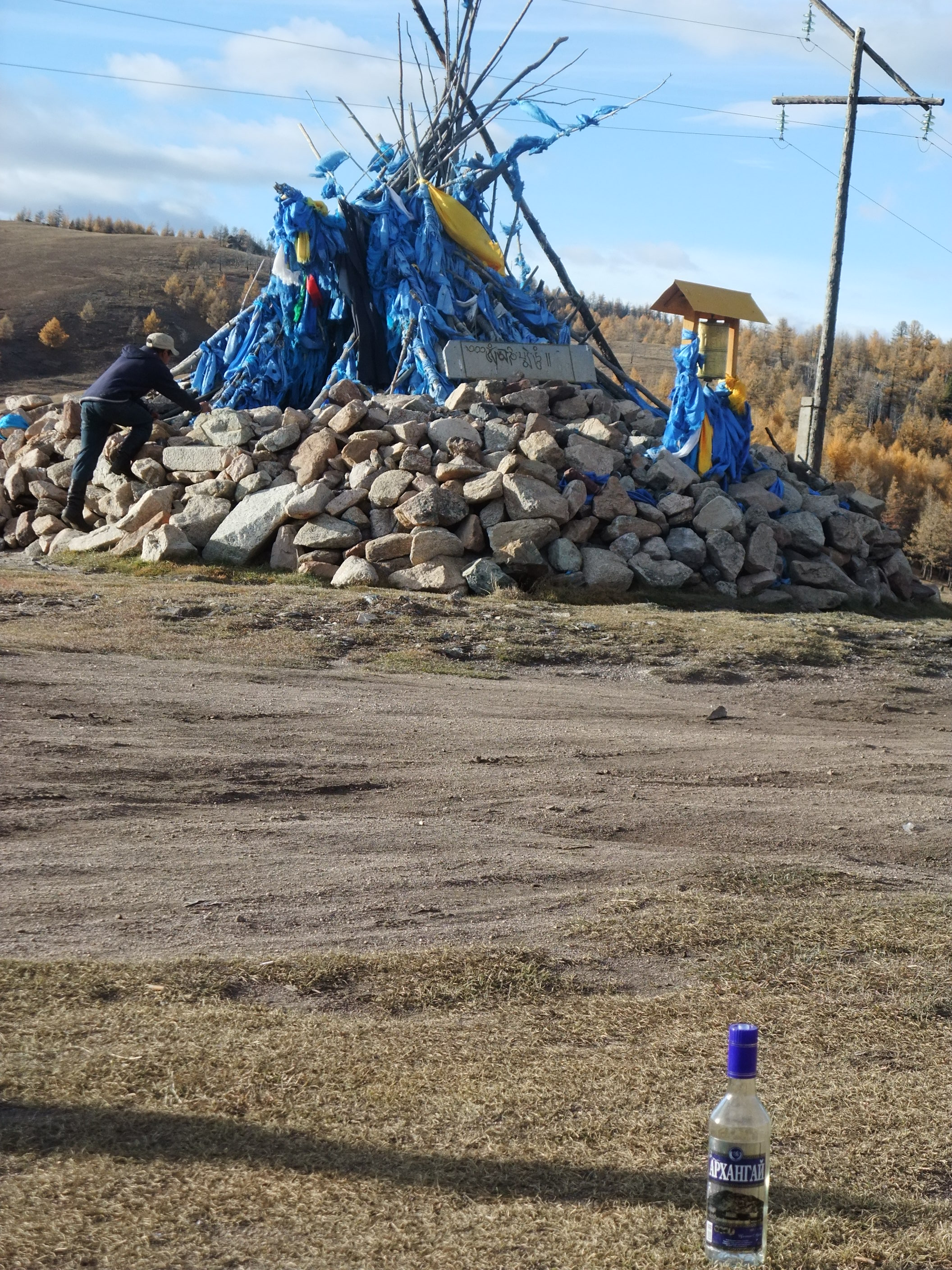 There are vodka bottles everywhere in Mongolia. On a mountainside, but especially near the ovoos. It seems men hang out at the sacred shrines and discuss the issues of the day over a bottle.