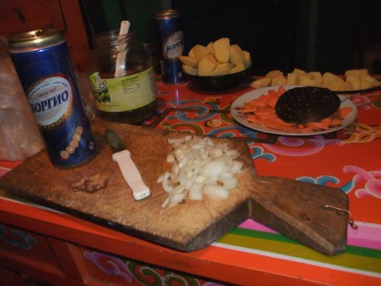 The second night she moved us into her house. She and her family were visiting other folks, so they let us have free reign for the weekend. The ability of Mongolians to share their house and food without even blinking is one of the magical things about the country. We set to cooking.