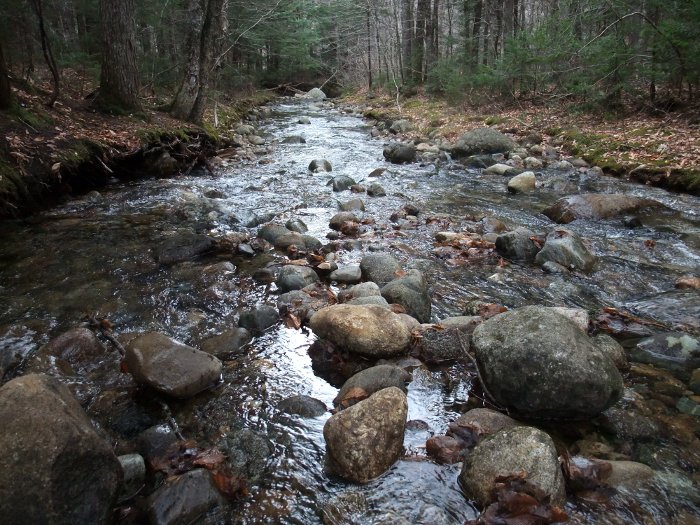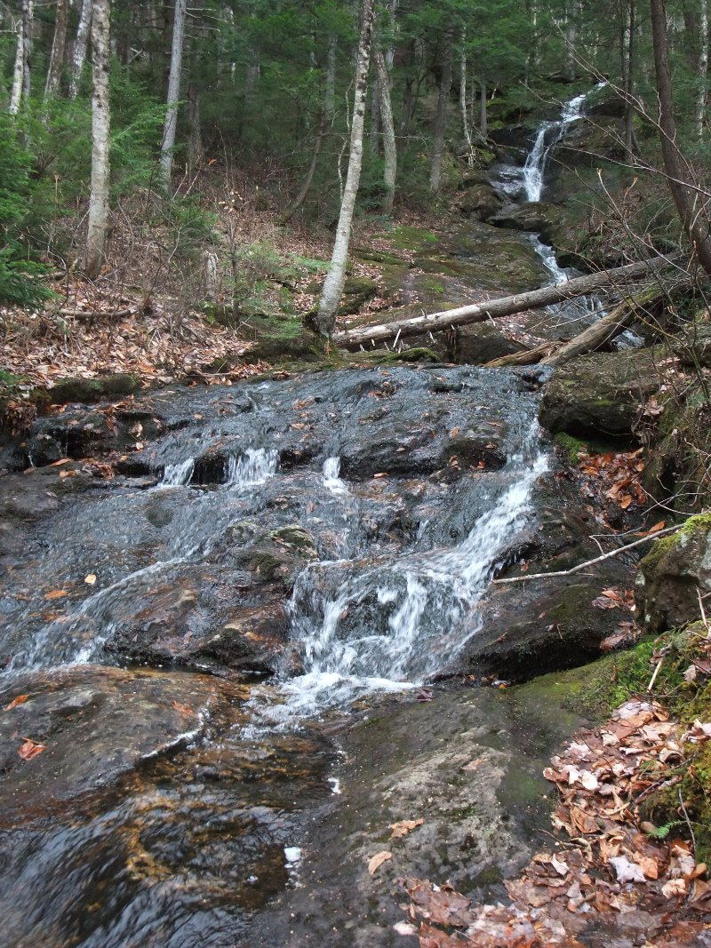 So off to ramble in the White Mountains near Evan’s Notch. I was looking for a short hike called The Roost, but I couldn’t find the trail head. The Caribou trail had parking, and a clear map, so I headed off. I was planning to make a loop around that was described as Caribou to Caribou MT to the Muddy something-or-other trail. What this heavily wooded trail lacks in views of the surrounding area, it makes up for by following a river that it crisscrosses over several times dotted by waterfalls.