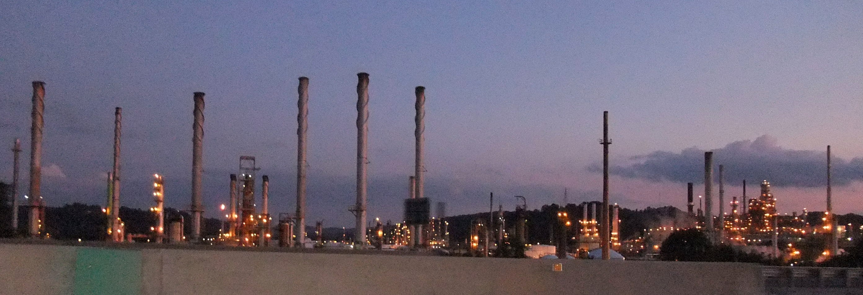 On 64, right over the border from West Virginia, there is a giant factory, an oil refinery it seems, on the Kentucky side. I wasn’t able to really capture the magnitude of this place from the window of my moving vehicle, but it’s like a distopian factory-scape rising up out of hills. Another couple of hours past this, one of my longest running close friends, and a bunch of Chinese take out was waiting for me. Now that’s worth driving to Ky for. Today, it’s on to Nashville, baby.