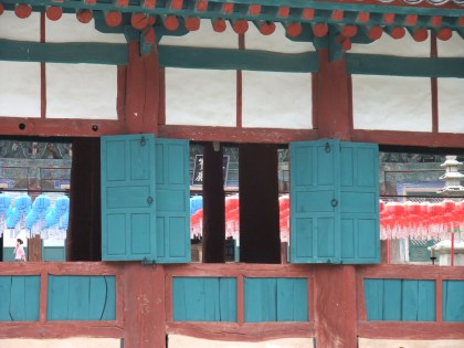 Next to the festival was a nice temple – Seonunsa. The majority of temples in Korea are extremely similar, and even myself, the eternal temple hopper, is finding my interest in them waning. This is a gorgeous spot in the mountains, and the original structure was built somewhere around 574, it has been reconstructed at least twice. I kind of like the look of the new, unpainted buildings, so simple and pretty.